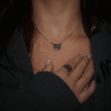 Κοσμήματα με αρχαιοελληνικές επιρροές από τον δίσκο της φαιστού. Κατασκευασμένα από καθαρό ασήμι 925 με προσεγμένη οξείδωση που δεν φεύγει από το κόσμημα για να φαίνεται ακόμα πιο έντονα η γραφή του δίσκου.