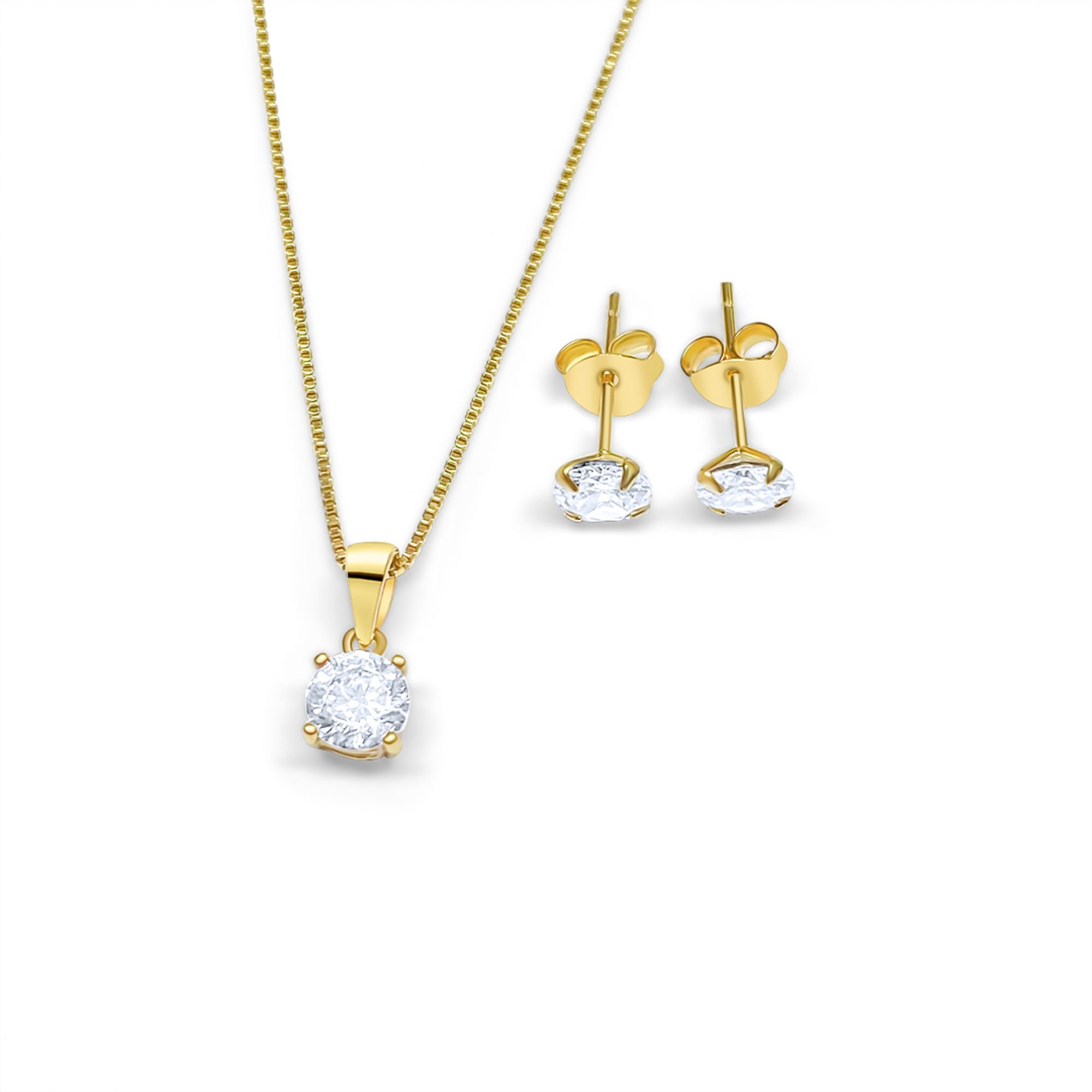 • Σετ κολιέ και σκουλαρίκια καρφωτά με πέτρες ζιργκόν επίχρυσο